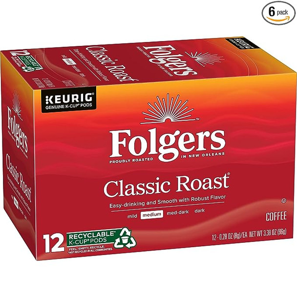 Folgers Classic Roast Medium Roast Coffee, 72 Keurig K-Cup Pods